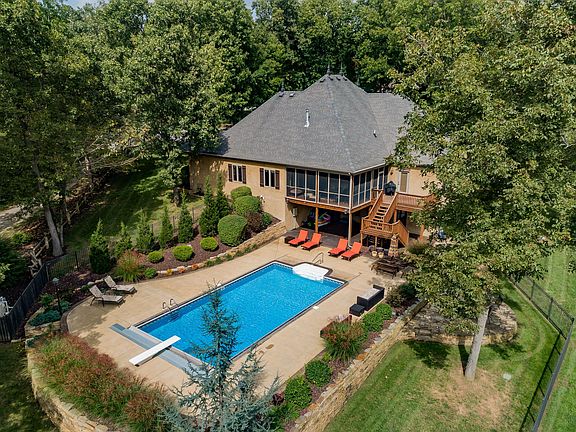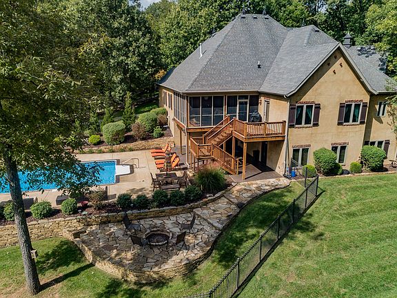 This spectacular French country retreat in prestigious Pebble Creek is tucked away at the end of a cul-de-sac on 3.6 wooded acres. The idyllic setting outside is matched by exquisite craftsmanship inside, including textured walls, gleaming hardwoods, arched doorways, and vaulted ceilings. The chef's kitchen is sure to impress with natural slate floors, granite island and countertops, custom antique cabinetry, stainless steel appliances, pantry, and butler's entrance. The breathtaking living room shares a floor-to-ceiling stone see-through fireplace with the screened-in deck, which overlooks your private oasis - swimming pool, gorgeous landscaping, basketball area, and massive 40'x60' shop building (heated/cooled). Once you visit, you'll never want to leave! Call for your private tour.