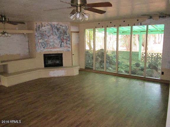 Spread out on your 22,000+ lot. The home has 3 bedroom 2 bath with tile and laminate flooring. The home has a 2 car detached garage with separate street entrance with electric and plumbing available. Large covered patio. Family room has a fireplace for those cool nights. Great home to fix and make your own!!! Great location by the community hospital.