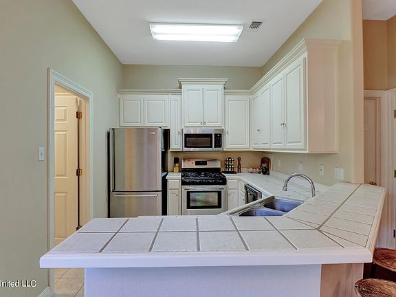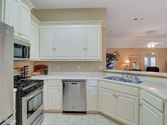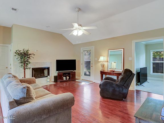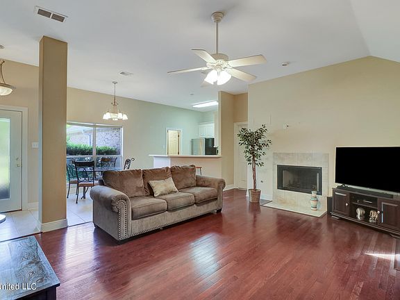 Fabulous Golf course community home! Great curb appeal. Large open living area with fireplace, Tile counter tops in the open kitchen, 3 bedroom split floor plan, the primary bedroom is large with a ceiling fan, attached bathroom has a double vanity and large tub and also features a walk in shower. Office addition was added off of the living room. The other side of the home features another bathroom with tub and vanity which separates 2 good sized bedrooms. This home also has a screened in patio and a fenced in backyard.