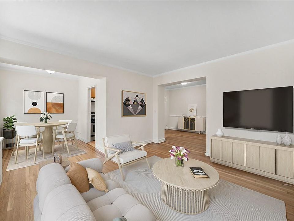 Discover your personal outdoor retreat! This top-floor apartment in the highly desirable Sunnybrook Gardens offers a stunning 595-square-foot private terrace with breathtaking treetop views—ideal for both entertaining and relaxing. As you step into the spacious foyer, you’ll immediately appreciate the beautifully refinished hardwood floors and fresh paint throughout. The layout seamlessly connects the kitchen to the dining area and sunlit living room. A standout feature is the versatile bonus room adjacent to the living area, perfect for a home office or guest accommodations. The generously sized bedroom, featuring two large closets, is thoughtfully separated from the main living area for added privacy, and the hall bathroom is equipped with a convenient tub-shower combo. Lastly, you will enjoy the incredible convenience of being just minutes away from Bronxville Village with all its charming shops and excellent dining, not to mention a quick and easy 35 minute train ride into Grand Central on Metro North. Immediate unassigned parking available, please note board requires a minimum income of $85,000 and credit score of 700 or above. Some photos have been virtually staged.