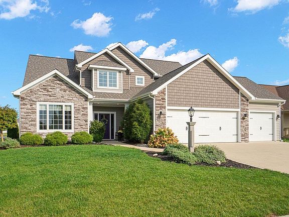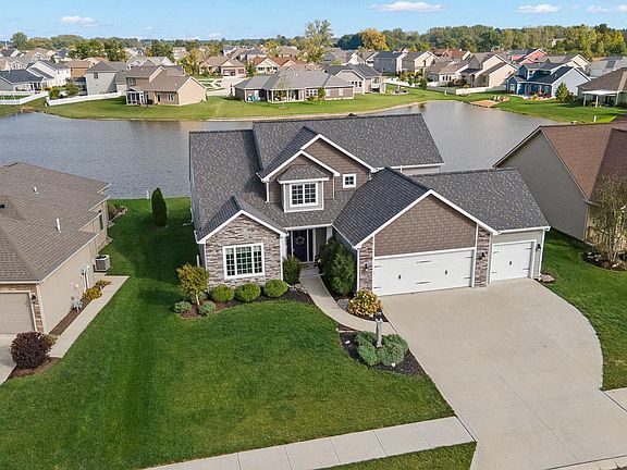 Experience true openness in this lofted four bedroom custom modern dream surrounded by water-views in the highly desirable Tuscany and nestled quietly within Northwest Allen County Schools. Soaring ceilings, panoramic views, an office, upper basement/loft area, massive mud room/laundry space, and the expansive owner's suite on the main all begin the journey. Relax and entertain on the stone outdoor living spaces and enjoy the art crafted fire pit with friends while taking in an out of this world view. Transom windows, solid wood floors and a floor to ceiling stone fireplace accompany the open chef's kitchen with granite, stainless, oversized pantry, custom cabinets, artistic niches and a glass slide to the outdoors. The master includes a large jetted tub, walk-in tile shower, tray ceilings, large walk-in closet, dual vanities and more. An upper level is equally impressive with an expansive loft and three oversized bedrooms. Pristine and meticulously maintained, this home could be yours. Close to Parkview YMCA, Pufferbelly Trail, Parkview Regional Medical Center, schools, trails, shopping and more.