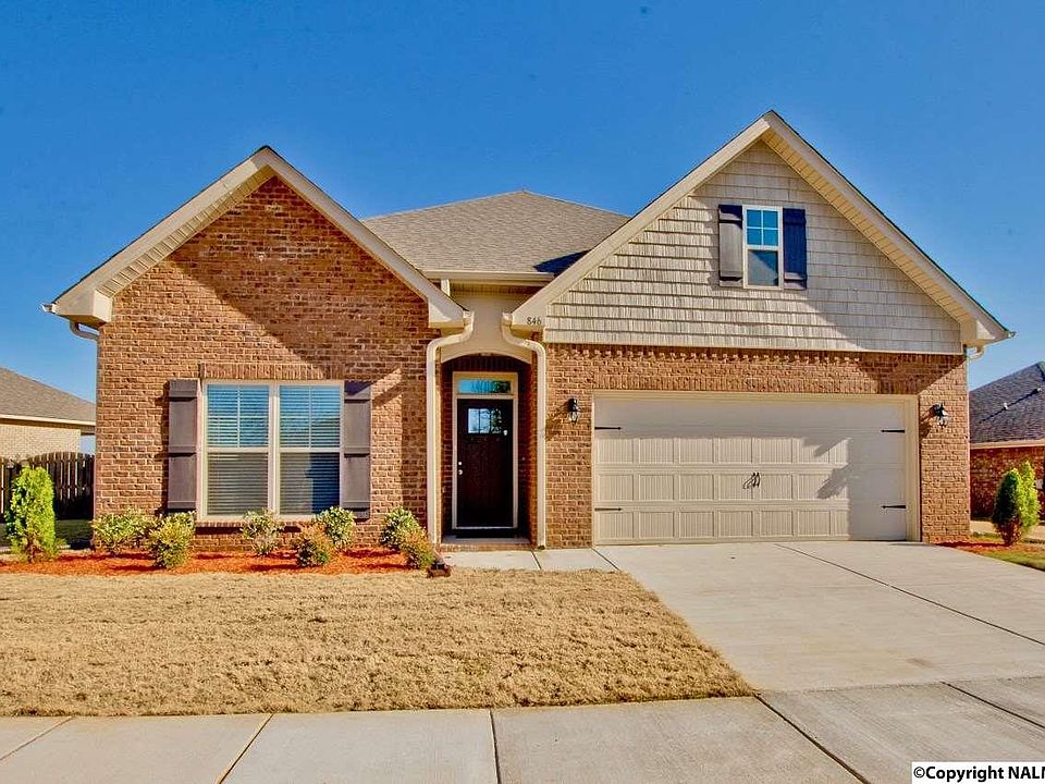 Awesome full brick 4BD/2BA/Car Garage home only minutes from Gate 7, the NEW PUBLIX and Town Madison. This well maintained home is move in ready. Amazing open floor plan with a beautiful stone surround fireplace. Your Kitchen has loads of storage with an island and huge eat-in breakfast bar plus stainless steel appliances. Over-sized living room accented with crown molding. Private master suite has a huge walk in closet, crown molding, and en suite bathroom with soaker tub, separate shower, and dual sink vanity. Enjoy the large covered patio and the privacy of a fully fenced, level backyard. Enjoy the community Pool, Clubhouse, Tennis, and more!