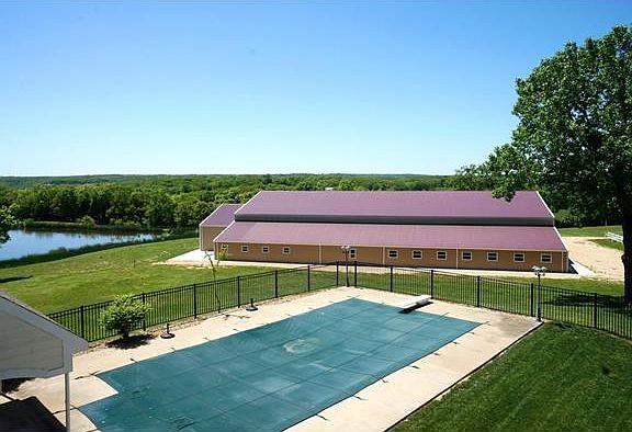 ULTIMATE, EQUESTRIAN COUNTRY ESTATE! This unique property offers a fully renovated, 1.5 story atrium ranch w/4 large bedrooms, 3.5 baths & oversized 3-car garage. Wood floors throughout, custom center island kitchen w/granite counters, tile back splash, stainless appliances & Butlers pantry. Spectacular views from fabulous, vaulted sunroom & large great room. Master suite features jetted tub, his/her walk-in closets, double sinks & separate shower. Finished w/o lower level includes large rec room w/wet bar & fireplace, laundry room, 2 bedrms & 2 full baths. Composite deck overlooks the 3-4 acre stocked lake & in-ground pool. Plus, there is a 3 bedroom guest house w/full basement, fireplace & detached garage. Amazing 20,400 sq ft, 15-stall barn featuring 80x150 indoor arena, 2 tack rooms, 2 wash stalls, office, kitchen, walk-in cooler, workshop, & bath. 100x200 lighted outdoor arena, fenced pastures, garden, orchard & riding trails. Gated property on a private, no through street.