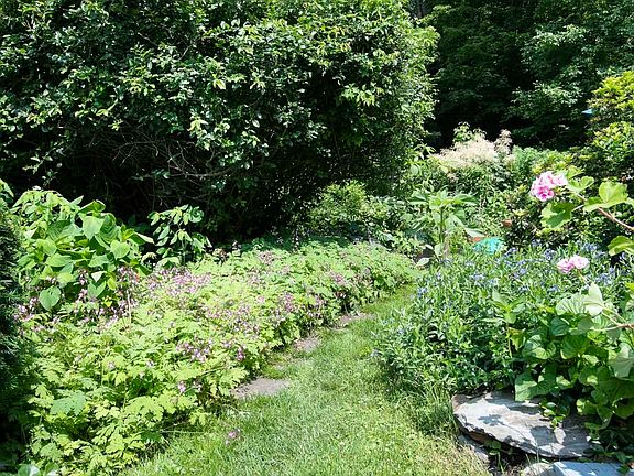 The 1920's farmhouse is set in magical gardens that wind and traverse the hill like those of Castel Saint-Claire designed by Edith Wharton. Two decks provide romantic settings overlooking the garden, marshland and wooded hills in the distance. Along a path bursting with color one finds a small one room hide away currently used as an office. Go a bit further one finds a many tiered vegetable garden. One enters the house though a central corridor with an office to one side. It opens in to a large but cozy dining and sitting room lined with bookshelves and punctuated with a woodburning stove. Just past the dining area one enters a well loved kitchen with sparkling new floors and a laundry room to its side. For easy entertaining the side door directs one through the garden to a dining deck for firefly dinners scented with peony. Upstairs are two bedrooms and a newly renovated bathroom. The third bedroom is located on the first floor just off the living room.Adding to its charm is the location which is just minutes from the train station and town for shopping, dining and the drive in movies!