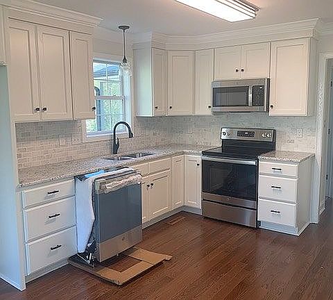 Beautiful three bedroom two and a half bath home located in the North Davidson school district! Relax out on the rocking chair front porch with ceiling fans. Many updates throughout the home Brand new stainless steel appliances in the kitchen with along with granite countertops,new hardwoods on main level, large walk-in laundry with cabinets and pantry for plenty of storage space! Master comes with a double marble vanity, new tiled shower with frameless glass door and so much more! This home won't last long, schedule your showing today!
