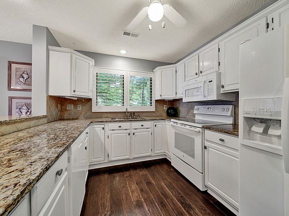 Great Lake Norman view! End unit 3 bedroom, 2 bathroom condo in Stone Bluff. Recently replaced security windows. First floor end unit condo with large patio overlooking lawn and lake. All rooms recently painted. Kitchen and bathrooms completely remodeled in spring 2020. Porch has access from master bedroom and great room. Master and guest bathrooms have walk in shower. Master bathroom refurbished with dual vanity. Condo includes full size laundry room. Three bedroom, two bathroom 1230 SF end unit ground floor. Large covered patio. Kitchen, bathrooms and fireplace renovated 2020. Engineered hardwood floors, quarts counter tops and plantation shutters. Deeded 24 foot boat slip. Dock and boardwalk replaced 2022. Pickle ball and tennis courts refurbished in 2022.