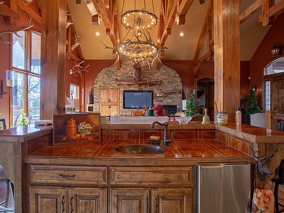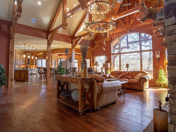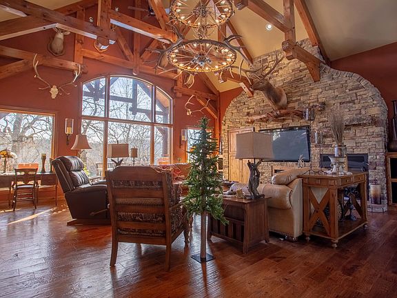 This is the home of your dreams! This incredible sanctuary lies deep within the woods of Branson West, surrounded by acres of forest. From the moment you enter the doors, you immediately notice the magnificent main level living room chandelier. This is one of two in the world! From there, take in the rustic interior decor. This adds wonders to the Ozarks' aesthetic! This home is exquisite with it's handcrafted beams to it's gourmet kitchen & dining area, outdoor screened in deck with fireplace, built in TV & sound system and porcelain floors. You will also enjoy the private pool with hot tub right out your back door. Or if it's the lake life you want then walk down to your very own 2 stall boat dock with swim platform and splash in beautiful Table Rock lake. If you want an even more private escape then you can check out listing #60103073 for an additional 125 acres that surrounds this beautiful home. If you want to generate additional income, this house is currently approved for vacation rentals with Stone County. This is a one of a kind opportunity!