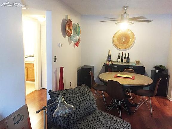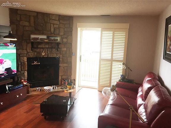 Don't miss this beautiful ground floor condominium in a well maintained complex, convenient to downtown, Ft Carson and Cheyenne Mountain. Home has been updated with easy to maintain laminate floors throughout as well as all new stainless steel appliances (2016), remodeled bathroom and cute kitchen. Plantation shutters on walk-out slider to patio provide privacy and the stone gas fireplace adds Colorado elegance. Assigned parking just in front of unit provides easy access and the community pool is just a few steps away!