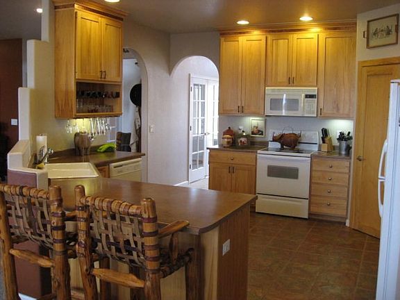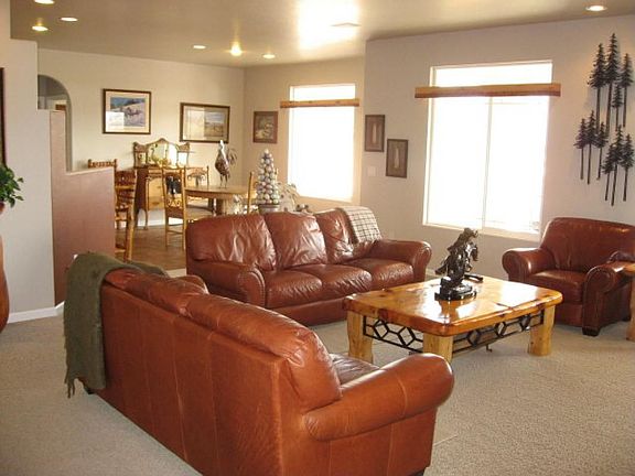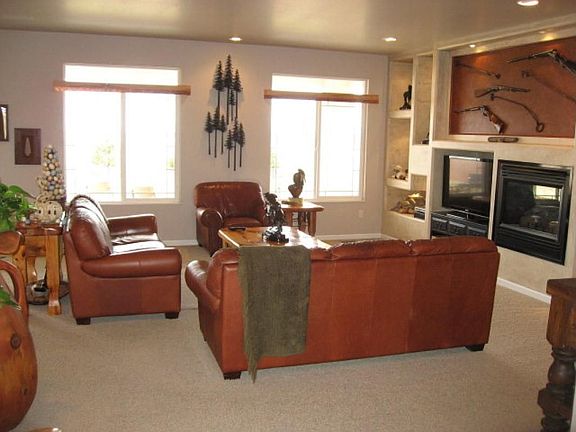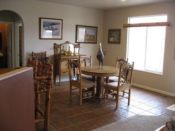 Spacious open concept home with 9' and 12' ceiling. Mountain views, 2.5 acres, white vinyl fencing, 2 detached buildings 36x32 and 36x24. Large covered back patio. Must see