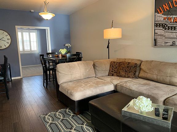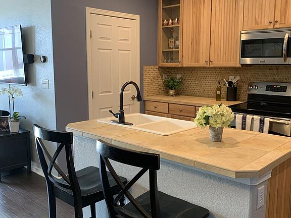 Clean, modern condo unit in a very well-maintained complex, with backyard access to Cherry Creek Trail, park and grassy areas with gazebo. Plantation window shutters throughout, large kitchen with granite counters and pantry, and lots of cabinet space, and mid-size front entry porch. The main floor includes a small balcony, gas fireplace, stainless appliances, updated powder bath, and main floor bedroom with its own bath (this room could also be excellent office space). The second floor has a large built-in desk space outside of a large master bedroom which includes its own large bathroom with both tub and shower and large walk-in closet. The laundry area is also located on the upper level and includes a washer and dryer. The unit has an ATTACHED, two-car garage, and ground floor entry area is equipped with large closet space and mudroom style entry from both the garage and front porch. Storage area off the mudroom. New AC unit and Nest thermostat. Owner pays for HOA, water, trash. Tenant acquires services for electric, gas, cable.