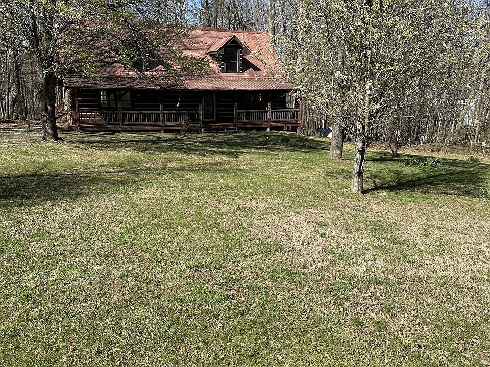 Log Home with wood beams up stairs and down stairs & on both porches. Home sets approximately 900 ft off road. Open field view in front yard & backs up to woods in the back. Has full length covered porch on front & back. Peaceful and private setting! Home sets on 6 +/- acre and allows plenty of room for Imagination!