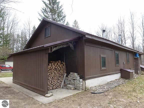 Beautifully maintained home with partial basement, large family room with wood stove and propane heater to keep you warm on those chilly nights! Large glass sunroom for looking at the wildlife that is plentiful. There is a detached 30x40 stick built garage, new well last year and plenty of room to roam! State land all over this area and 86 inland lakes in Kalkaska County for whatever your target species may be! The snowmobile/ORV trails are right out your door so no trailer necessary! Home has metal roof and is turn key, ready for a new owner to enjoy all Northern Michigan has to offer! The adjoining 5 acres and 32x56 pole building is also available for 36,900!