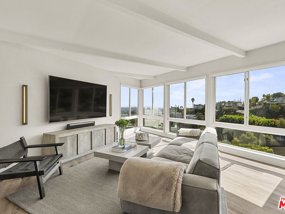 Behind privacy hedges, and a secure gated entrance, this newly remodeled modern Hollywood Hills retreat awaits. Offering a rare combination of panoramic views, elevated design, and exceptional privacy. Surrounded by lush, curated landscaping, the home provides a sense of serenity, security, and harmony with its hillside setting. Inside, two beautifully finished bedrooms are thoughtfully positioned for privacy. The guest suite captures sweeping views and offers easy access to a full bath, while the primary features a spa-inspired bathroom with refined finishes. The updated kitchen is sleek and functional, featuring stone countertops, high-end appliances, and bar seating that flows effortlessly into the open living and dining areas, ideal for entertaining or everyday ease. Floor-to-ceiling windows flood the space with natural light and frame iconic city views from nearly every angle. Disappearing glass doors open to a peaceful outdoor lounge with a custom fire pit, calming fountain, and layered greenery, creating a setting that feels both expansive and intimate. A special expression of hillside living, where style, calm, and city access coexist beautifully.