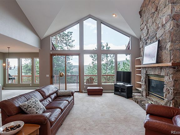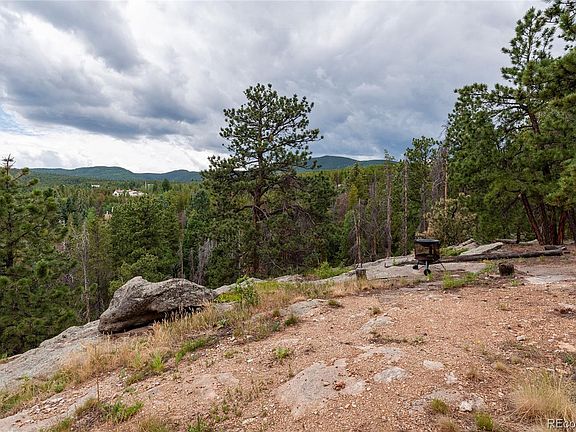 Experience breath-taking mountain views from this home in desirable Evergreen Meadows West. Live the idyllic mountain dream in this four bedroom, four bath ranch style home with walk-out lower level. A spacious and liveable floor plan make this an easy home to live-in and love. Entering the front door you see out the living room windows to miles of gorgeous vistas. The living room has a vaulted ceiling and a rustic moss rock fireplace. Floor to ceiling windows have a sliding glass door to a large deck. A dining room with views connects the living room and kitchen. The kitchen is a cook's dream with newer stainless appliances, lots of counter space and an eat-at peninsula. The adjacent eating area opens to a den and has garage and outside access. The spacious primary bedroom has windows on two sides with views of scenic rocks and trees. These views, combined with a large walk-in closet, a connected five-piece bath and a door to the deck, make this space special. Two bedrooms (one currently used as an office) with a connected full bath are also on this main level. Downstairs a family room opens to the lower deck and yard access. A large corner bedroom looks out on the property and shares a full bath with the family room. Huge utility room houses the NEW tankless boiler and well pump/storage tank. Outside hiking is on the property's 5.48 acres where you can enjoy granite boulders and mountain landscape. Nearby open space and hiking opportunities abound and include Maxwell Falls open space, Flying J Ranch, and Cub Creek. Minutes to Conifer and Evergreen. Easy access to South Park, Buena Vista, Salida and skiing. Live the ideal mountain lifestyle in this property. Buyer to verify all information.