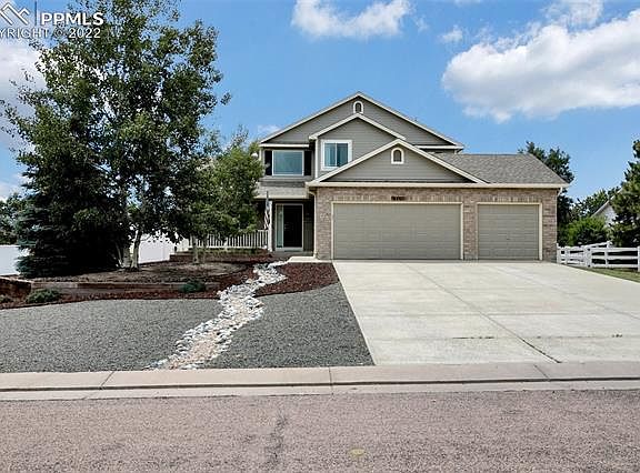 Lovely home with 3 Bedrooms, 3 Baths and a 2 person office with Custom built-in cabinetry and French doors * The home has a 3 car attached garage as well as a Large Detached 4 Car Drive through Garage/Workshop * The main level has a light, bright open kitchen with an island and an eat in area * Family Room also has custom built-in cabinets and a Gas Log fireplace * The Kitchen & Family room are close to the walk-out to the large 43 x 16 concrete patio * Separate formal dining and a formal living room and an enclosed office with built in cabinets * The laundry room has a sink and cabinets and a half bath complete the main level *Upstairs is a large master with a 5 Piece Master bath and a Walk In Closet * 2 Nice size secondary bedrooms with attached Jack n Jill bath complete the upper level *Along with outdoor parking for an RV there is a convenient RV dump site on the property * Triple pane windows throughout! Close to schools, shopping, Peterson or Schriever AFB! It is a great location and the detached 864 Sq ft. Workshop/Garage is amazing!!! The 24' x 36' workshop with one 16' wide x 10' tall door (front) and one 9' wide door x 7' tall (back) Heavily insulated detached gargage/workshop with air lines, 110 and 220 volt outlets. Built-in cabinetry and attic storage space.