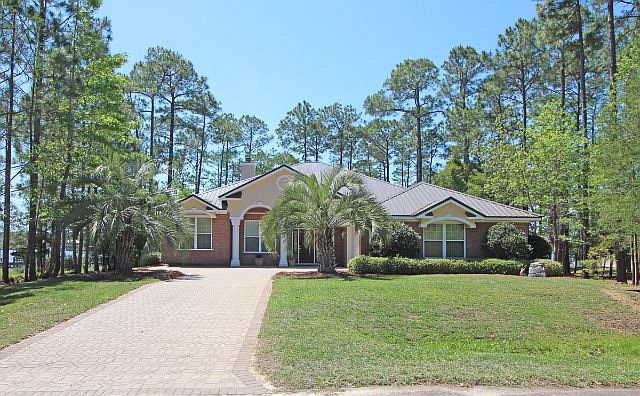Unbelievable views from this three bedroom, two and a half bath custom with pier and covered boat dock bayou front with direct access to Wolf Bay! This lovely home offers an open and flowing floor plan - perfect for entertaining, tile throughout the living areas, a spacious master suite with wood floors, his and hers closets, large master bath with double vanities, jetted tub and separate shower. Relax on the screened porch overlooking the back of the property, which is camouflaged with trees for added privacy.