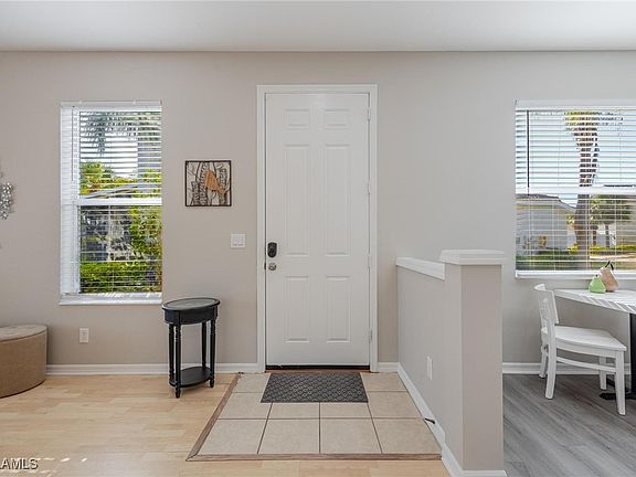 This end unit, waterfront 3 bdrm, 2.5 bath, 2 car garage townhome has a comfortable floor plan & over 1750sf for year round or seasonal living. BONUS! Loads of extra natural sunlight with wide LAKE Views from all the main living areas along w/ a screened lanai. The spacious floor plan w/ 2nd floor bedrooms provides a large eat-in kitchen and a breakfast bar for a variety of entertainment possibilities. PLUS~The living room is large enough to accommodate a 2nd dining area, Xtra storage throughout w/ a pantry, walk-in closet in primary & hallway closet upstairs. The 2nd floor laundry is conveniently located amongst the 3 bdrms & 2 full baths. Updates include: 2024 ~ Whole home interior painted, kitchen LED recessed lights, H2O heater, wifi garage door opener; 2023 ~ HVAC unit, refrigerator, Tile roofs (by HOA). Reasonable HOA that includes: Liability, Hazard and Flood insurance, as well as, basic cable and high-speed internet! AND No CDD-for lower Taxes! LOCATION: in the secure, gated community of Lakewood Village and a short stroll to the west entrance of the beautiful Lakes Park – great for walking, bike riding, train museum, playground, weekly farmers markets. Also easy drive to Sanibel/Captiva Island, Fort Myers Beach, fine dining, arts and entertainment, shopping, Universities and Medical Centers. ***SELLER MOTIVATED***