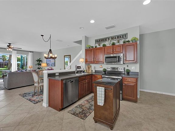 This home is absolutely gorgeous! You'll spend a lot of time enjoying the beautiful Florida winters on your oversized screened lanai that offers a fabulous lake view! This 3 bedroom end unit offers a lot of natural light and is open and airy. Some of the many features include engineered hardwood flooring, upgraded stainless steel appliances, a spacious kitchen with wood cabinetry, newer AC and water heater, a 2 car garage with extra shelving and so much more! New roof being installed soon! Residents also enjoy a community pool and spa and low fees! Lakewood Village is conveniently located to everything - a short drive to Ft Myers beach, shopping, schools and restaurants! Lakes Park is just outside the community where you can enjoy boat rentals, fishing, walking, bike paths, picnics and more! The pictures do not do this home justice! It is impeccable and an absolute must see!