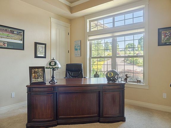 * 3% commission to Buyer's agent. Stunning custom single level 4400 sq. ft. home on 2 acres. 5 miles to I-5, 15 minutes to Eugene/ Springfield. 4 bedroom, 5 1/2 bath, den/ 5th bedroom, apartment/ bonus room above garage with full bath and kitchen. Shop with bathroom and shower, 2nd washer and dryer. Extensive use of granite, travertine, black walnut and cherry cabinets, 8 ft. tall interior doors, plaster walls & ceilings, High ceilings throughout, Crown mounding, Beautiful attention to detail. Custom hand painted wall murals. Two gas fireplaces, built-ins, abundant storage, built in vacuum system, stereo speakers throughout. Recirculating hot water, Sound insulated interior walls. Spacious master suite featuring walk-in shower, jetted tub, large his and hers walk-in closets, built in ironing center. Gourmet kitchen with granite slab counters, travertine tile floor, cherry cabinets, island, snack bar, breakfast nook, 48" subzero, double ovens, induction cook top, warming drawer, pot filler. Family room with built-in cherry entertainment center, gas fireplace and wet bar with wine cooler. Large laundry room with black walnut cabinets, granite slab counters, travertine floor, sewing or craft area, two built in ironing centers. Expansive covered patio with stamped concrete, lush landscape, Automatic sprinkler system and 2 waterfall features, koi pond. Oversize 3 stall garage with 8 ft. tall garage doors, plus 40' x 42' attached, heated shop with 2 12 ft. tall garage doors and bathroom with shower, laundry and stairs leading to additional 900 sq. ft. of storage. 12' x 40' covered breezeway, RV parking, 600 amp service. Pre-wired for security system. Stamped concrete driveway and Patio, Additional storage under house.