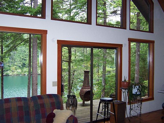 Secluded & secure lake front Custom Chalet Home on prestigeous Woahink Lake just minutes from Florence. Featuring a fantastic lake view with a trail to your own private dock. Home includes a loft w/ French doors, custom blinds, vaulted ceilings, hardwood floors, cozy wood stove and a slider out to the deck & hot tub. Also includes a separate 2 car garage with guest quarters upstairs. A one of a kind opportunity! Neighborhood Description Private with only 2 neighbors. One on each side.
