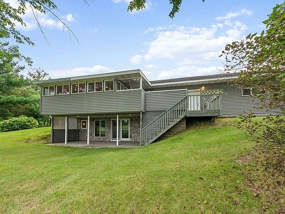 Welcome to this rare 80-acre property offering a blend of serene country living and incredible functionality! This spacious home features 4 bedrooms, 3 bathrooms, a walk-out basement, and a bright 4-season sunroom with an electric fireplace—perfect for enjoying panoramic views year-round. The home is ideally positioned to take in the natural beauty of the land, with 40 acres of tillable ground and 35 acres of mature woods—ideal for farming, hunting, or outdoor recreation. With solid bones and room to personalize, this property is a dream for hobby farmers, nature lovers, or anyone seeking privacy and space. Just minutes from town, but a world away from the hustle and bustle—don’t miss this unique opportunity!