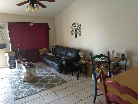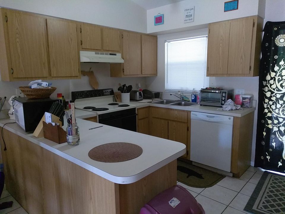 Open Floor Plan- all tile, ceiling fans, screened back porch, kitchen appliances, laundry room, parking for 2 cars.