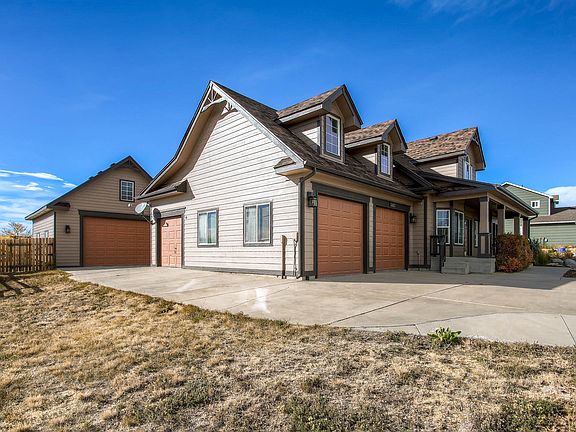 View Video: https://vimeo.com/188448343 This custom built 2 Story home sits on ½ Acre with split rail rear fence. Home backs to the west with views of the front range and Pikes Peak. Great curb appeal, beautiful country style covered front porch. Walk into a nice foyer with front office, over sized main level master with sitting room gas fireplace patio access to front and back of home, nice walk in shower and walk in closet. Main level laundry, Open living room and kitchen with included stainless steal appliance. Living room has 2 story vaulted ceilings with lots of light. Up stairs enjoy a large loft and bedroom and bath, in the basement there is a large family room, theater another bed and bath and large storage area. Attached 3 car garage that has Heat & AC, and detached over sized 2 car garage. Home backs to open space / detention pond and walk ways that will take you to the neighbor hood parks or wrap you through the neighborhood for a long walk or run. Home has access to indoor & outdoor pools, club house and exercise facilities.