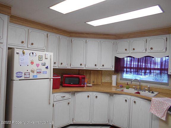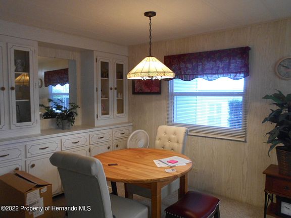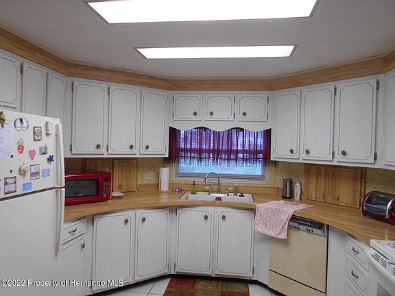 Welcome home! Look at this dollhouse, with a circular kitchen, light and bright, newer windows roof over, enclosed Florida room, partly furnished, per inventory sheet open floor plan, well-kept home shows pride ownership, Come and enjoy living in a 55 plus community where you own your own land for $48.00 a month. So many events to do here in beautiful Brookridge !