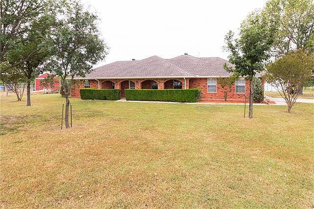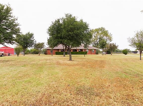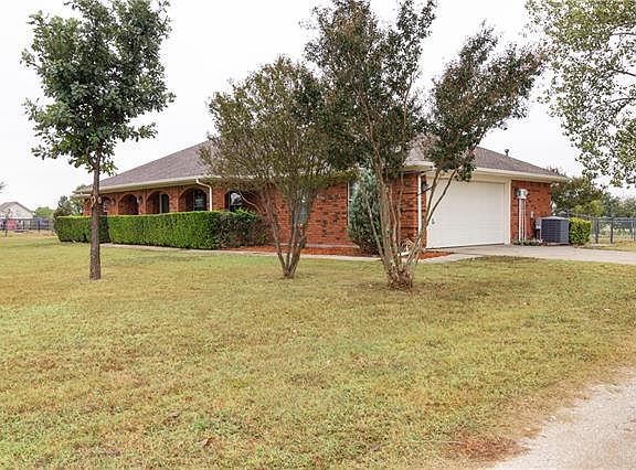 Located just 15 miles from Denton,country living on a quiet cul de sac awaits you!Lots of trees in the front yard and beautiful sunsets from the back covered porch(1 of 3)and NO HOA,this home is a must see.Enjoy the open floor plan with beautifully updated kitchen,featuring new granite counter tops,stainless sink,faucet,and tile back splash and a gorgeous renovated master bath. The entire home has been painted and updated.Create or relax in the 1,230 sq. ft. shop featuring wood working tools and an 8 person hot tub for year round use!The doors are 1 standard garage and 1 oversized to accommodate RV parking inside.Since the property allows horses,the shop could easily convert to a barn.Garden and fenced yard.