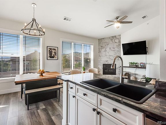This FULLY UPDATED CORNER PENTHOUSE boasts 2 bedrooms, 2 baths, and BREATHTAKING MOUNTAIN VIEWS. Fresh paint, vaulted ceilings, and an open floor plan filled with natural light create a spacious, airy feel throughout. The kitchen features granite countertops, stainless steel appliances, and ample cabinet space. A sliding door off the eat-in kitchen leads to a patio with more views and an extra storage closet. The primary bedroom includes vaulted ceilings, a walk-in closet, and an en-suite bathroom with dual vanity and an oversized tub. Down the hall, the additional bedroom adds versatility and could function as an office or flex space if needed. A second updated bathroom features a frameless shower door. Multiple closets throughout provide ample storage in this home. The deeded detached garage, located just south of the building, provides additional storage and is drywalled, painted, and finished with epoxy floors. Residents of Redstone Ridge enjoy community amenities, including a pool and fitness center. This beautiful home is move-in ready and perfect for a relaxed lifestyle!