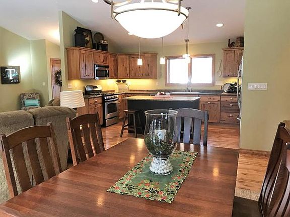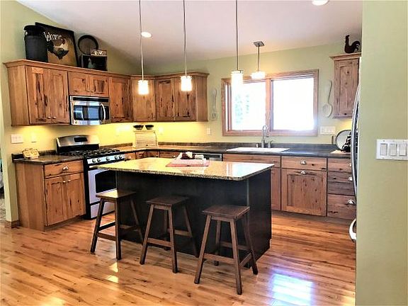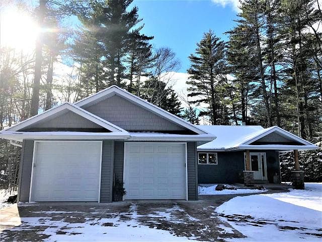 Pride of Ownership, quality craftsmanship, beautifully maintained, and location, location, location are just a few of the phrases that come to mind when describing this property. Built in 2014, this 3 bedroom, 3 bath ranch home sits proudly on .70 wooded acres bordering STATE LAND and right down the road from picnic area & boat launch on Tomahawk Lk, part of the Minocqua Chain! Main floor features include; open concept family rm, dining rm and kitchen, stunning wood burning fireplace, laundry, master suite, hardwood flooring, half bath, vaulted ceilings, large walk in pantry, pass through for wood to fireplace, slide out drawers in cabinets, soft close drawers, granite counter on island, in floor heat with four zones. Lower level has 2 additional bedrooms, full bath, family room and plenty of storage room with stairs that access the garage. Exterior features include; black top driveway, 24x42 detached garage, stamped concrete firepit area, sprinkler system, gutters with gutter guards.