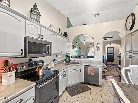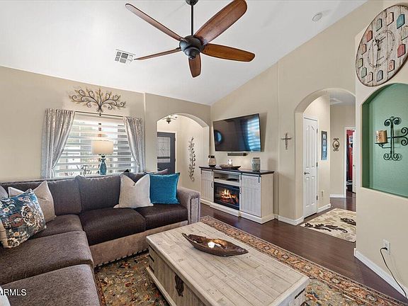 Welcome to your ideal POOL Home Oasis! This home seamlessly combines modern upgrades and timeless elegance, offering a comfortable and stylish living experience. Outside, the exteriors are freshly painted with new lights on the garage, front, and back doors. Inside, the 2018 laminate wood look flooring adds a polished look and easy maintenance. The kitchen is equipped with top-notch 2018 appliances with the modernized stainless steel finish. Natural light fills the rooms through 2018 energy efficient windows and Arcadia doors. The backyard is a private retreat with a 2019 pebble-tec pool remodel. It features an energy-efficient pump for cost-effective enjoyment. All storage sheds in the backyard are included! Wonderful extended patio ramada with built in sun shades makes this oversized... backyard a place of fun and relaxation. Indoors, enjoy the 2019 water heater, 2020 furnace, and new 2022 air conditioner for year-round comfort. Custom window treatments add elegance and privacy, and 2021's new ceiling fans keep the rooms cool. The HOA covers an amazing amount of maintenance from roof replacement / maintenance, repair, and exterior painting for peace of mind and never having to budget for those items. This home offers luxury, convenience, and stylea perfect living experience. Don't miss out on making it yours!