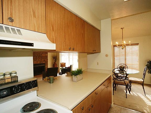 Light & cheerful south facing end unit in highly desirable Timbercove II Condos. Clean/move-in ready. Vaulted ceiling in Living/Dining, with open floor plan and galley style Kitchen. Lg. Bath accessible from both hall and Master Bedroom. Views of mature landscaping & Fire Fighters Park. Garage w/storage room. These units sell quickly, so don't miss out! All brand new: carpet, paint, interior doors & hardware, light fixtures, toilet, range/oven, window coverings, Kitchen faucet & soap dispenser, Kitchen cabinet hardware, repaired/repainted pergola on patio, garage door & hardware, closer on front security door. New(2012): Kitchen & Bathroom cabinets, built-in microwave, dishwasher, vinyl flooring in Entry, Kitchen, & Bathroom, tile backsplash in Kitchen, bathtub, tile surround in tub/shower, showerhead/grab bars/shelf in tub/shower, 2 security doors, smoke detectors/carbon monoxide detectors, and window screens. New(2011): Refrigerator. Wood burning fireplace has never been used.