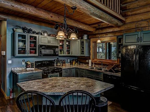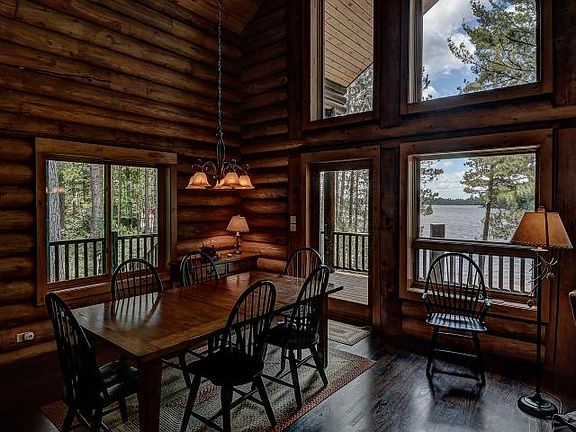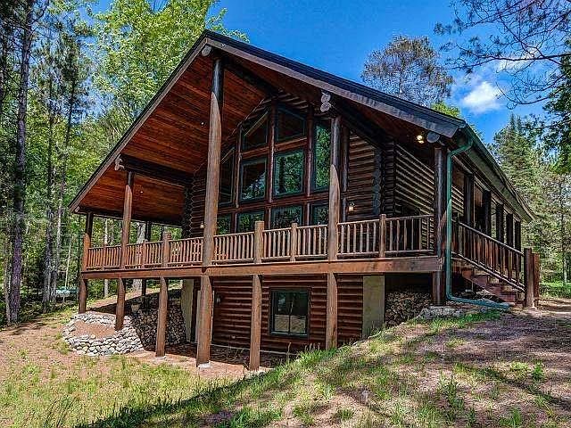 Spectacular Full Log Home on 122' of prime level sugar sand frontage with 5+ acres on the south western shores of Great Bass Lake. This quality built log home has 1850 sq ft of living space, the great room offers stunning views of the lake with the floor to ceiling windows, other features include 3 bedrooms, 2 1/5 bathrooms, floor to ceiling river rock wood burning fireplace, main floor master bedroom suite and a large lakeside wrap-around deck. House also has an unfinished lower level walkout basement ready for your own personal touch. Call today to schedule a private showing of this incredible property.