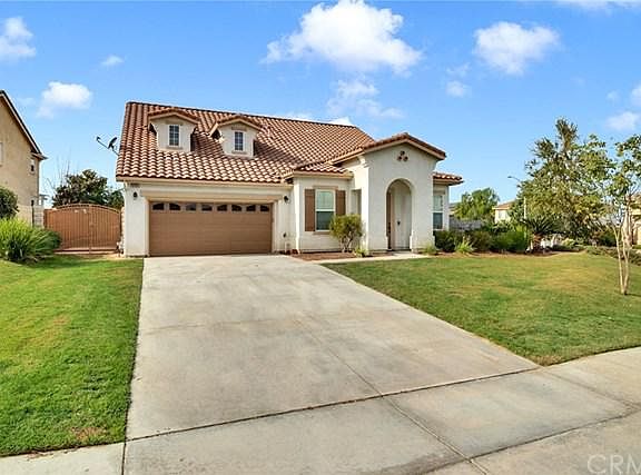 Great pool home located in one of the best neighborhoods in Orangecrest. This 4 bedroom and 4 bath home is located on the corner of a private cul-de-sac just minutes away from the Orangecrest Community Center and playing fields. Walk in and find the formal living room and 1st bedroom at the front of the home. Walk through and find the large open great room connected to the kitchen. The master suite is located on the 1st floor as well as another large guest room. Walk upstairs to find a large loft overlooking the great room, perfect for a kids playroom or an extra TV room. With yet another guest room upstairs, this floorplan offers large living quarters for your comfort. The bonus is the tropical backyard that features a covered patio, a built-in BBQ, an outdoor fireplace and a sparkling swimming pool for your families enjoyment. The large lot has been landscaped front and back. This home has been painted inside and out, new carpet throughout the home and the exterior fences have been painted. Close to shopping, restaurants, churches, parks and top rated schools. Close to all major freeways including the 215, 91 and 60. You will love this incredible neighborhood.