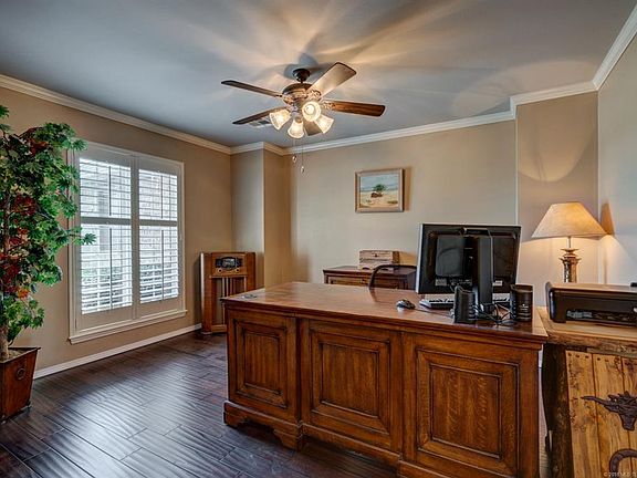 Tranquil 4/3/3 home w/convenience. Easy commute to Tulsa. Add'l living, dining and office. Backs to greenbelt. Pristine. Move in ready!
