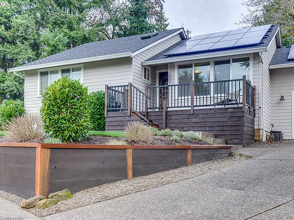 Beautifully remodeled single level home at the end of a quiet culdisac. Large park like yard with large deck and patio space. Real hardwood floors, vaulted ceilings and large windows provide lots of natural light. Ample storage in garage and two attics. Historic walnut tree, dog run, mature apple tree, lots of gardening space and large wood garden shed. Hot tub and appliances included. Solar panels are 100% owned and minimize or eliminate power bill. Dog house and chicken coop not included.