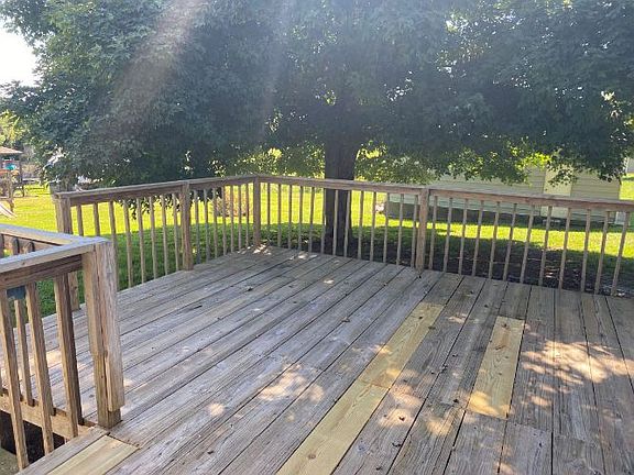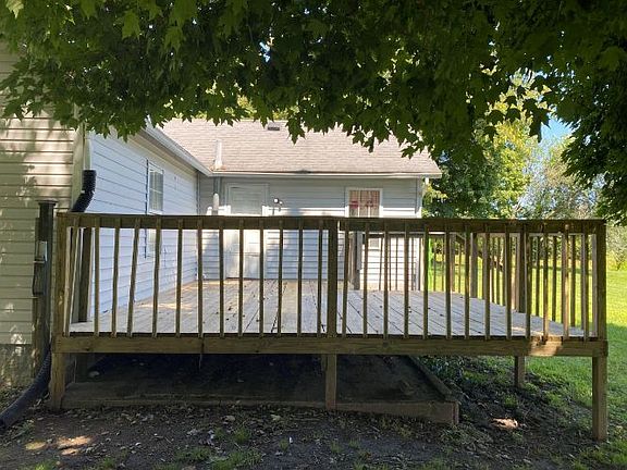 This vinyl sided home features 3 bedrooms, bath, living room and an eat-in kitchen. Other amenities include: 20x30 metal detached garage, covered front porch, rear deck, central heat and air with city water situated on a corner lot.
