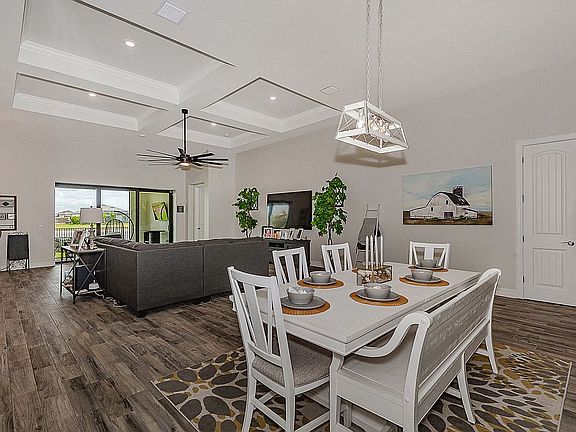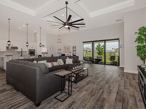 Simply Stunning 4BR/3BA smart home in the gated community of The Fields. Stonewater model home built by Divosta. Single-story design with huge open concept, soaring ceilings, modern dream kitchen featuring enormous center island great for entertaining and family gathering! 3 way split bedroom floor plan. Roomy, spacious, and oversized living and bedrooms. The Stonewater’s open layout lends itself to making guests feel at home. The kitchen blossoms into a central living space, adjacent to a large dining area and covered lanai. Features include wood look tile, impact windows, 3 car garage, fenced yard with sprinkler system, and a screened in porch. The kitchen has been upgraded with double ovens, high-end Kitchen Aid appliance package and quartize countertops. Amenities include 2 clubhouses, 2 pools, basketball court, and fitness center. This home is an absolute must see!! This home is only available through the listing agent / Compass and no co-brokerage cooperation commission is being offered.