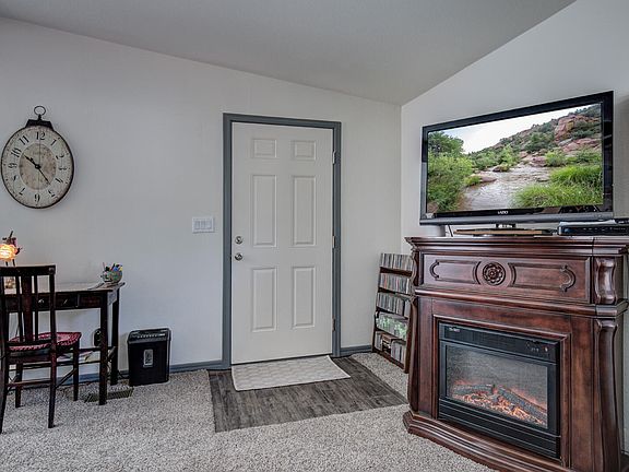 Beautiful almost like new 2017 triple-wide Cavco manufactured home on a level .52 acre fenced lot. Grassy front lawn bordered by perennial flowers with plenty of room for gardening. Inviting 12'x12' covered deck with garden doors that open into the spacious open great room with vaulted ceiling & neutral carpet. Kitchen features upgraded stainless steel appliances, vinyl tile floor, rich deep-toned cabinets & elevated breakfast bar. Main bedroom en-suite offers dual vanity sinks, shower & large closet. Split floor plan with guest bedroom, hall bath & laundry room on other side of home. 2x6 construction, 40# snow load roof, dual pane windows, forced air propane furnace, underground utilities. Rustic 2-car carport or barn. Property is completely wire fenced with gate entrance. No HOA