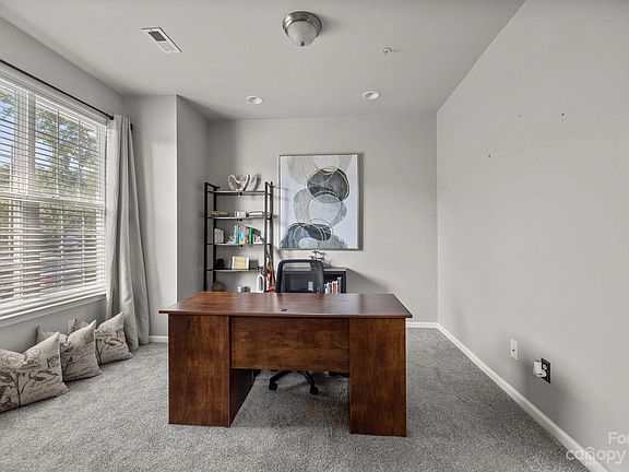 Wow, this wonderfully sized END UNIT townhome is what you have been looking for! Located in the desirable Villages of Avonlea, this 3 bedroom 2.5 bathroom townhome offers a perfect blend of style, space and convenience. You’ll love the floor plan which features a private office on the main level with new carpet, and beautiful new laminate flooring throughout all other areas on the main floor. Nicely sized open kitchen concept with a panty and plenty of cabinet space, breakfast bar overlooking the family room and dining area, covered front porch and rear patio perfect for grilling & entertaining. Tile flooring in the upper level bathrooms and neutral colors throughout. Other updates include New A/C, newly installed roof (2023), newer hot water heater (2019), and newer washer/dryer (approximately 3 yrs old). Refrigerator, Washer/Dryer to remain. Steps away from shopping restaurants, UNCC(Charlotte), I-485, I-85 and I-77 and more. Move-in Ready!!!