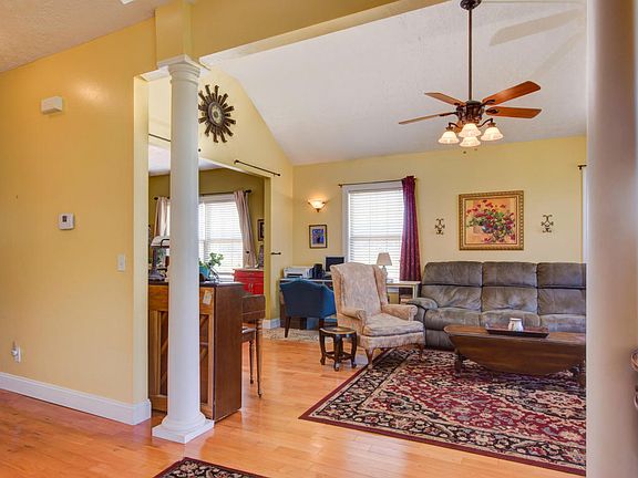 Beautiful Suburban Property! Amazing views from this lovely 4 BR home on 5.3 acres, with a full finished walk out basement. Built in 2005, this home features 4 BRs (4th BR has no window), 2.5 baths, 2 living areas, & a formal dining. Wood flooring, 9 ft ceilings, & a new metal roof, are just a few of it's amenities. Great kitchen with an eating bar, lots of cabinets, & a pantry. Living room with cathedral ceiling, open to the formal dining.The family room in the basement with a gas fireplace with be a favorite gathering spot! Enjoy quiet evenings & gorgeous sunsets from either the deck, or 2 covered porches! Approximately 2.5 acres fenced with a loafing shed, great for horses or cattle! This is a well maintained home with a beautiful setting! Easy commute to Springfield, Joplin, or Monett.