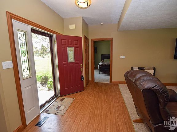 Like New 3 BR 2 Bath home nestled in a beautiful 5 Acre wooded lot. This home features a great entry, split floorplan and great room with vaulted ceilings and gas fireplace. Upstairs there is a loft with family room, exercise room and dormer office (desk to remain). Great floored attic space for storage. The main bath was updated in 2017, and Master bath also recently updated with heated ceramic floor, jetted tub and beautiful ceramic shower. Outside, there is a private deck, amazing well manicured lawn, asphalt drive and pole barn with electric, phone and garage door w/ opener. Located in Monroe Central Schools! Easy access to both Muncie and Richmond, you will enjoy the peace and quiet this property has to offer!