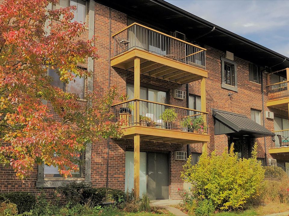 Please read entire ad. Has a lot of forest around the building, located at the top of a hill, parking included (one space), walk to the Metra Station, super quiet area, and great neighbors, with balconies, A/C, and new kitchen and bathroom. Credit checks ($40.00) are required, no collections, no judgments, no evictions. Heat is included. Master satellite dish installed by owner allowing cable choice, WiFi provided