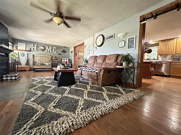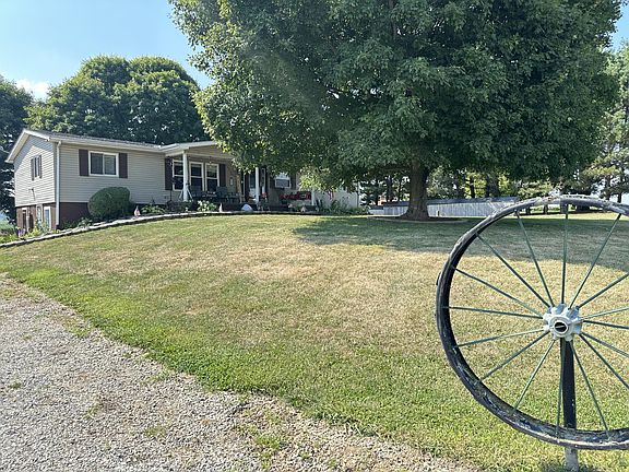 Welcome to this to impeccably maintained home that sits on 1.09 ac of land. Enjoy the sunrises from your covered front porch or sunsets from your back deck. As well as spending time in your 24x32 detached garage w/ 3 overhang doors or utilizing the garden shed/ playhouse w/ electric! Upon entering this home, you will find a living room w/ solid hardwood floors & oak trim that continues into the kitchen w/ a center island & ample cabinets/counter space, that also has space for a dining room table. The remaining portion of the home comes complete w/ 3 bedrooms including an owner suite w/ a private bath, a den/office space. Down a few steps you will be amazed to find this home provides a full basement w/ a walkout as well as a rec room w/ a wood burning stove. Sold ''As Is''.