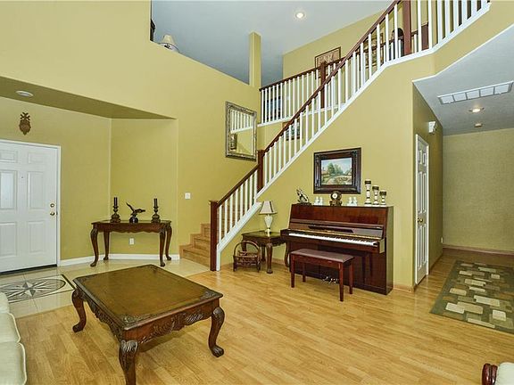 This wonderful home is in the sought after Orangecrest community near the Grove Community Church, Orange Terrace Park. You first notice in the custom tile entryway and vaulted ceilings leading toward the dining room. The kitchen has granite countertops with custom cherrywood cabinetry. Family room has a custom marble fireplace. Upstairs includes a large loft for an entertainment room , kids playroom, or office. GORGEOUS master bedroom with custom tile and and great closet organizer. There is laminate and tile flooring throughout the home as well as custom cabinetry throughout the entire home. This home is ideal for entertaining. The backyard is an extraordinary oasis with the custom built swimming pool, rock waterfall, and slide. Patio has outdoor ceiling fans to cool off during the summer months. The house is equipped with RV parking space! Walls have been painted Neutral since pictures have been takes Tenant pays for all utilities including pool and lawn maintenance. Pets allowed with $1000 pet deposit. Security deposit due at time of signing.