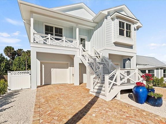 Custom new construction coastal cottage located on the southernmost point of sought-after Boca Grande — just steps from the pristine beaches and emerald-green waters of Gasparilla Island State Park. This thoughtfully designed residence features 5 bedrooms, 4.5 bathrooms, and over 3,000 square feet of living space, highlighted by 13-foot vaulted tongue-and-groove ceilings throughout the main living areas. Built with exceptional quality and efficiency, the home includes spray foam insulation, Andersen impact windows and front door, durable Hardie board siding, and Azek trim for long-lasting coastal performance and peace of mind. The gourmet kitchen is beautifully appointed with a gas Thermador range, panel-ready appliances, and cabinetry offering abundant storage — ideal for both everyday living and entertaining. Each bedroom on the main living level features vaulted tongue-and-groove ceilings, walk-in closets, and private en suites, creating a true retreat for family and guests alike. The 13-foot board-and-batten vaulted hallway serves as a stunning architectural focal point and a statement of craftsmanship. The first floor offers a full-over-full bunk room, a guest bedroom, and a spacious family room, providing flexible living and gathering spaces. Step outside to your shellstone pool deck, where you’ll enjoy a resort-style pool with a waterfall and linear fire feature, all overlooking the outdoor living area complete with a custom stone kitchen — perfect for sunset dinners and coastal entertaining. This tastefully designed coastal cottage blends refined luxury with relaxed island living — just steps from the beach and breathtaking sunsets. Request your private showing today