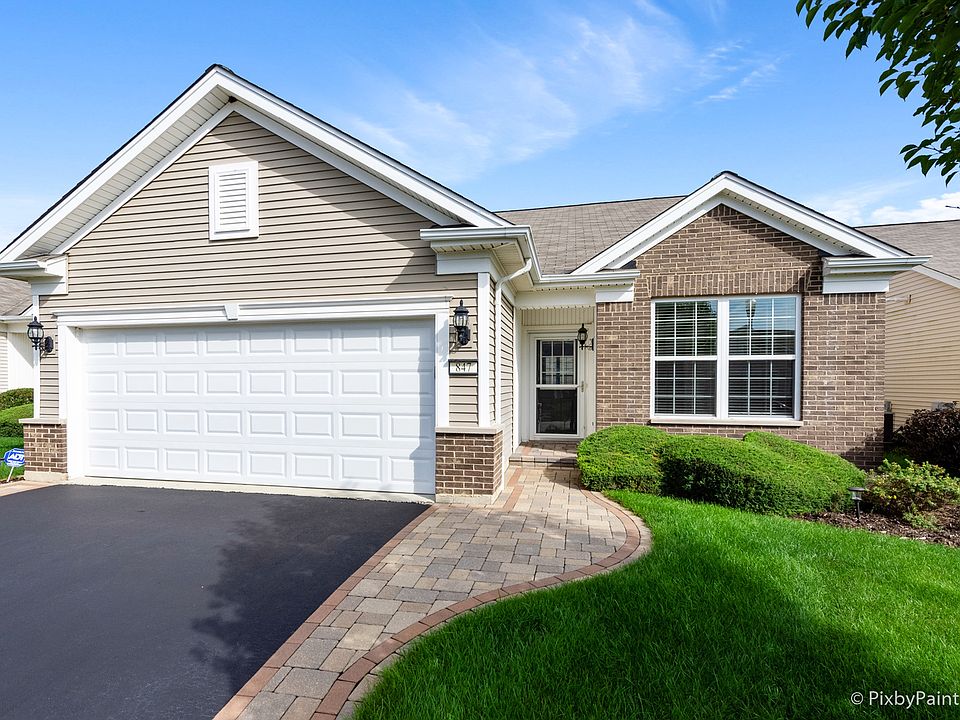 SUNNY & OPEN WELL CARED FOR RANCH HOME. ENJOY MAINTENANCE FREE LIVING AND THE EDGEWATER BY DEL WEBB LIFESTYLE! NO MOWING OR SHOVELING REQUIRED ~ 24/7 GATED 55+ ACTIVE ADULT COMMUNITY! BRICK PAVER WALKWAY LEADS TO A COVERED ENTRY. STEP INSIDE TO AN INVITING FOYER & HIGH 9' CEILINGS ~ SPACIOUS GREAT ROOM WITH NEW CARPET OPENS TO A DINING ROOM & OVERLOOKS A LARGE KITCHEN W/42" MAPLE CABINETS, CORIAN COUNTERS, BREAKFAST BAR, STAINLESS STEEL APPLIANCES, PANTRY + GENEROUS SPACE OPENS TO DINING & GREAT ROOM! MASTER BEDROOM HAS A BAY WINDOW, NEW CARPET, PRIVATE BATH, DOUBLE SINKS, WALK-IN SHOWER + HUGE WALK IN CLOSET ~ 2ND BEDROOM W/DEEP CLOSET + ADJACENT FULL BATH. NICE YARD W/BRICK PAVER PATIO. LAUNDRY ROOM W/WASHER AND DRYER INCLUDED + 25' DEEP GARAGE. NEW CARPET IN LR & MASTER. ENJOY ALL THE PHENOMENAL AMENITIES EDGEWATER COMMUNITY HAS TO OFFER! FABULOUS "CREEKSIDE LODGE" CLUBHOUSE INCLUDES: INDOOR & OUTDOOR POOL + HOT TUB, FITNESS CENTER, PARTY ROOM, GAME ROOM, FIREPLACE, TENNIS COURTS, BOCCE BALL, WALKING TRAILS, PLANNED ACTIVITIES AND MUCH MORE! CONVENIENT LOCATION NEAR RANDALL ROAD SHOPPING & DINING + CLOSE TO I-90, RT. 20 AND THE METRA STATION!