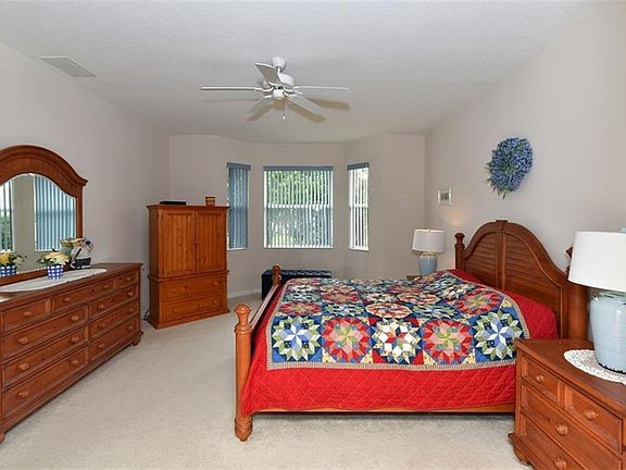 Welcome Home to this lovely 4 bedroom, 2 bathroom one story home. This Berkshire V floor plan boasts 2,400 sq ft with a 2 car garage on a corner lot. Located behind the gates of Stoneybrook at Heritage Harbour, where golf membership is optional! Lovely arched windows in the formal living and dining rooms allow for ample light to flow from one end of the home to the other. The kitchen is located in the heart of the home, giving a nice separation between the bedrooms and living space. Plenty of room for a pool if desired, or just enjoy the benefits of the quiet privacy of the lanai and green space. A few other highlights are the gas range in the kitchen, the garden tub in the master bath, and the flexibility of utilizing the 4th bedroom as an office or den. Come live the Florida lifestyle!