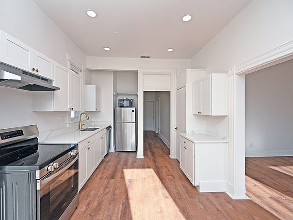 For rent is a newly renovated 1 bedroom apartment with hardwood floors, new tile, new cabinets, new countertops, and all new appliances including washer and dryer in unit. Tenant pays all utilities (gas, electric, sanitation, and water). First month's rent and security deposit due upon signing. One year lease. Proof of income, solid rental history, and minimum 600 credit score are needed. If applicable, there is a $200 nonrefundable pet deposit, and then $35 additional each month per pet. No Section 8. One year lease. Proof of income, solid rental history, and minimum 600 credit score are needed.